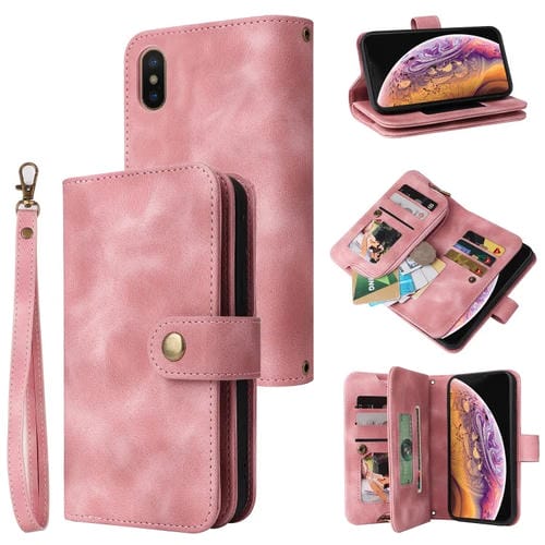 Funda para iPhone Xs / X Multifuncional con Ranura para Tarjeta y Cremallera Cuero (Oro Rosa)