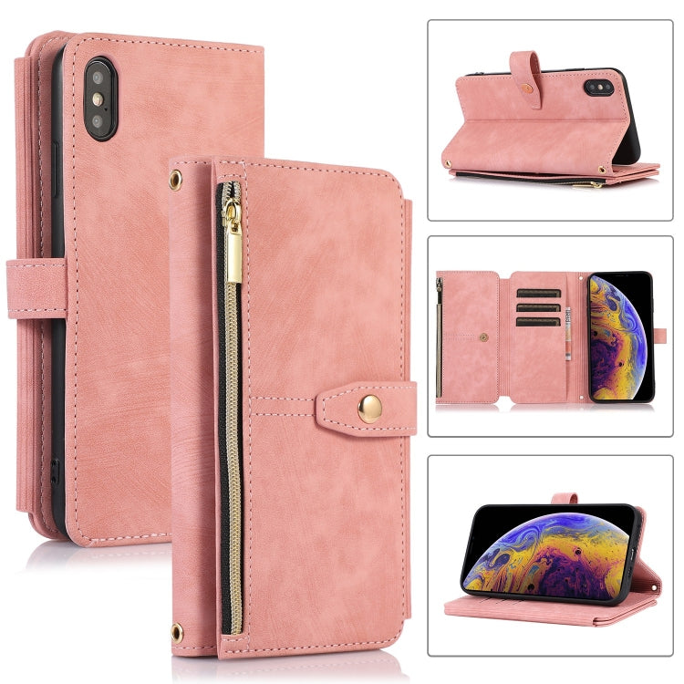 Funda de Cuero para Teléfono iPhone Xs Max Dream 9-Card Wallet Zipper Bag (Rosa)