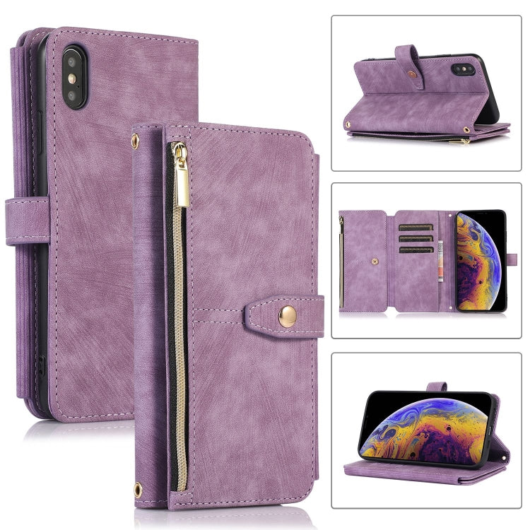 Funda para Teléfono iPhone X / Xs Dream 9-Card Wallet Zipper Bag Cuero (Púrpura)