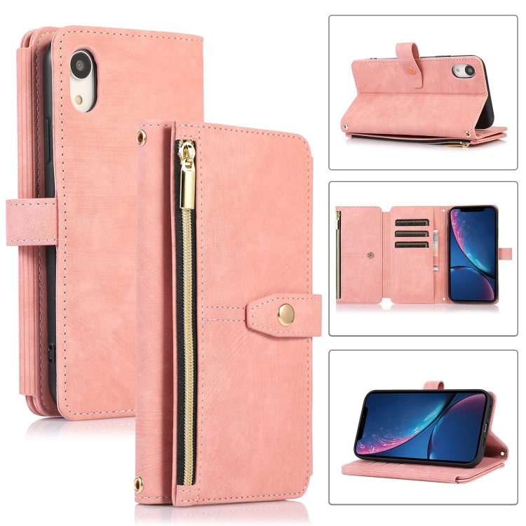 Funda para Teléfono iPhone Xr Dream 9-Card Wallet Zipper Bag Cuero (Rosa)