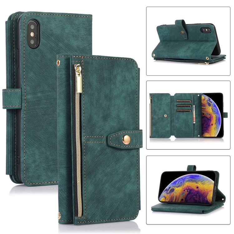 Funda de Cuero Dream 9-Card Wallet Zipper Bag para iPhone X y Xs (Verde)