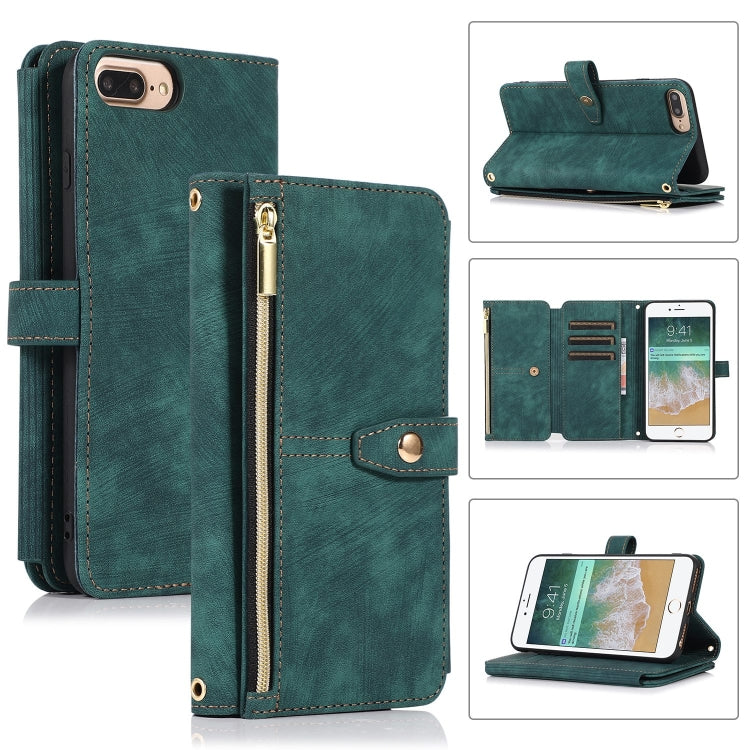 Funda de Cuero para Teléfono iPhone 7 Plus 8 Plus Dream 9-Card Wallet Zipper Bag (Verde)