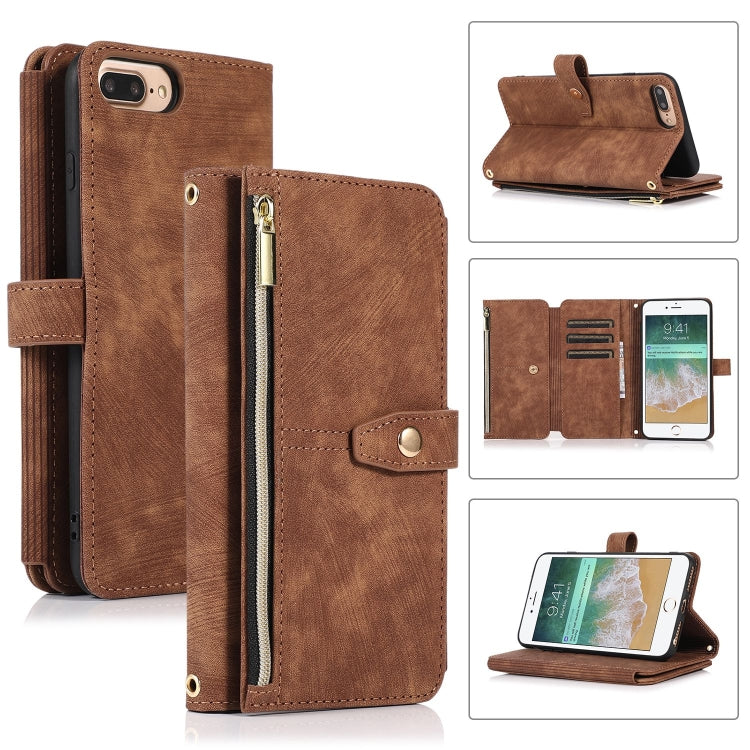 Funda de Cuero para Teléfono iPhone 7 Plus 8 Plus Dream 9-Card Wallet Zipper Bag (Marrón)