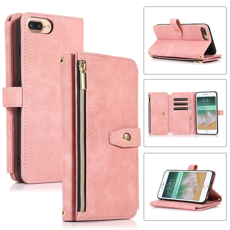 Funda para Teléfono iPhone 7 Plus 8 Plus Dream 9-Card Wallet Zipper Bag de Cuero (Rosa)