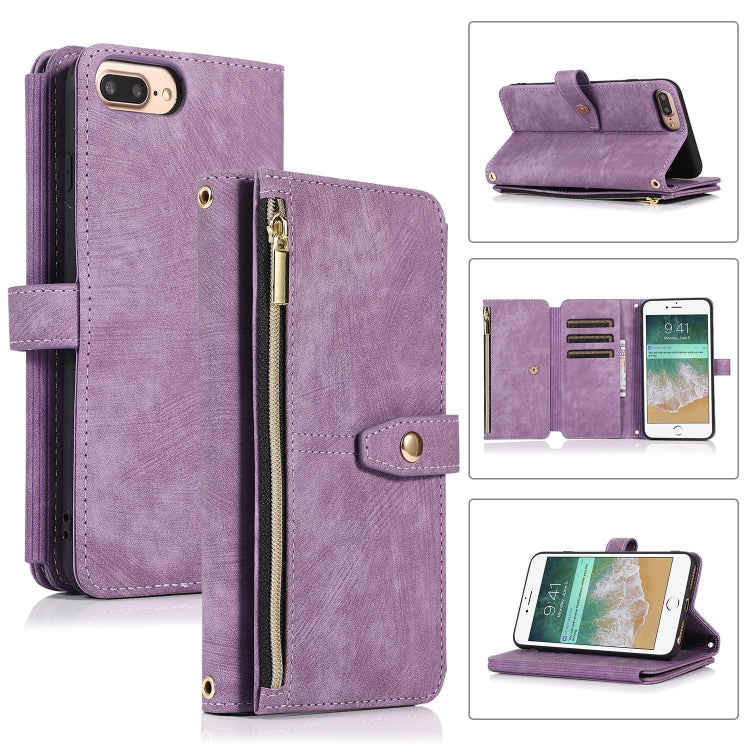 Funda de Cuero para Teléfono iPhone 7 Plus 8 Plus Dream 9-Card Wallet Zipper Bag (Púrpura)