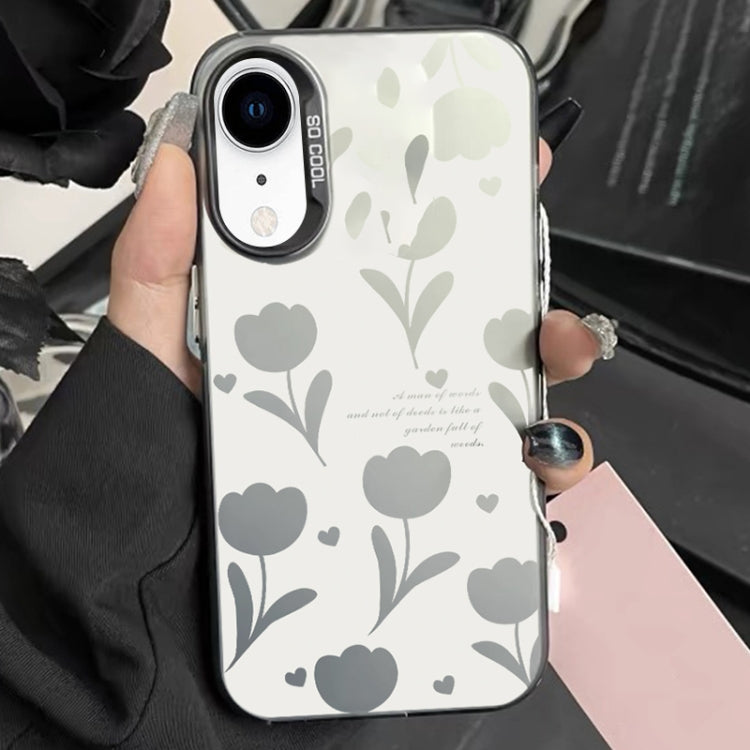 Funda híbrida para iPhone Xr TPU con pintura plateada para PC (Tulipanes Huecos Negros)