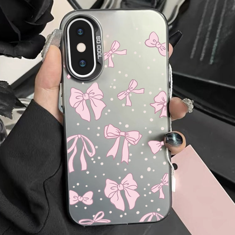 Funda híbrida para iPhone Xs Max TPU para PC con pintura plateada (Lazo Floral Blanco)