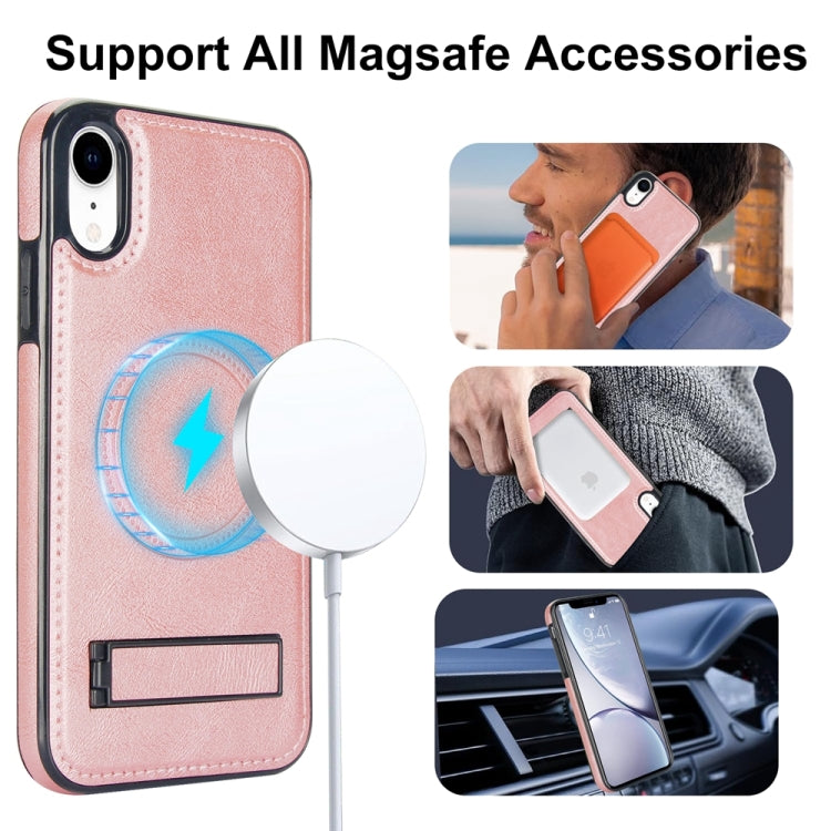 Funda para Teléfono iPhone Xr Magsafe Soporte Invisible Cuero Retro (Oro Rosa)