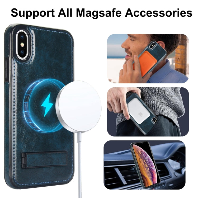 Funda para Teléfono iPhone X / Xs Magsafe Soporte Invisible Cuero Retro (Azul)