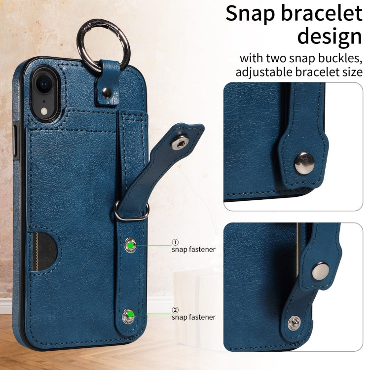 Funda para Teléfono iPhone Xr con Anillo y Ranura para Tarjeta Textura de Pantorrilla (Azul)