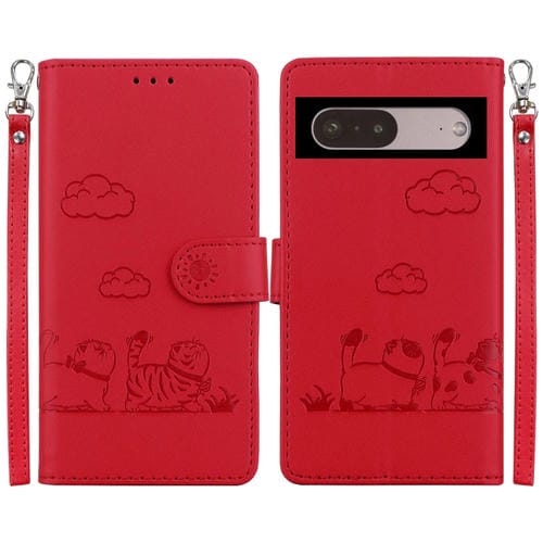 Funda de Cuero Rfid para Google Pixel 7 Pro con Diseño de Gatos (Rojo)