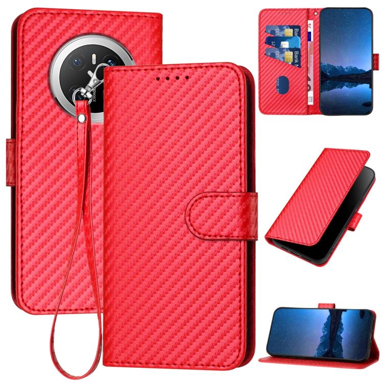 Funda de Cuero con Hebilla de Fibra de Carbono para Huawei Mate 70 Yx0070 con Cordón (Rojo)