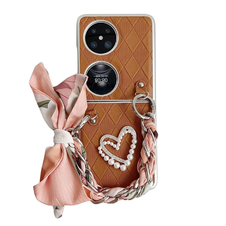 Funda para Huawei P50 Pocket con Textura de Cuero Rhombus, Pulsera Corazón, Antigolpes (Marrón)