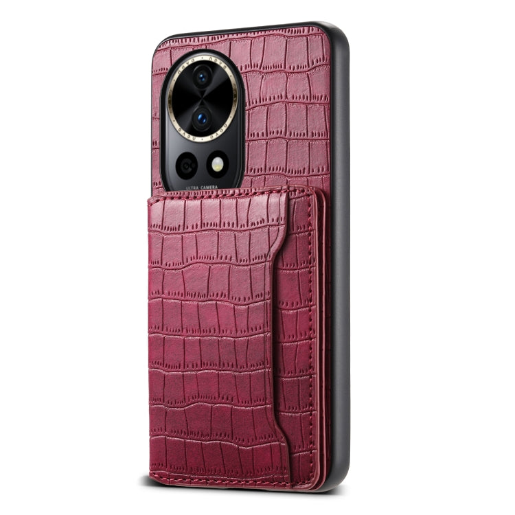 Funda para Huawei Nova 11 con Diseño Bolsa para Tarjetas y Textura de Cocodrilo (Rojo)