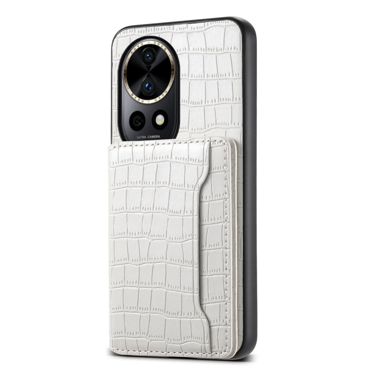 Estuche para Huawei Nova 12 Pro con Diseño Bolsa para Tarjetas y Textura Cocodrilo (Blanco)