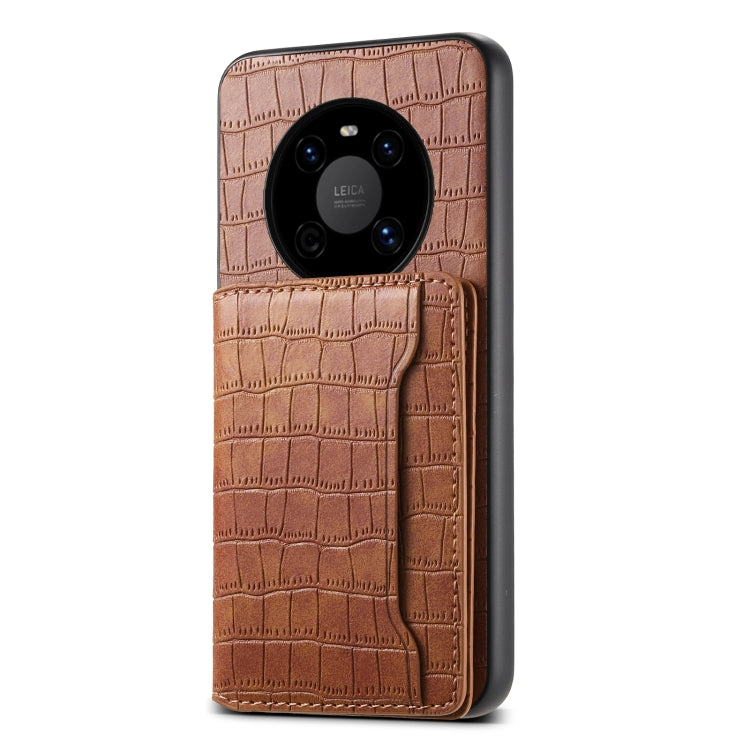 Funda para Huawei Mate 60 con Diseño de Bolsa para Tarjetas y Textura de Cocodrilo (Marrón)
