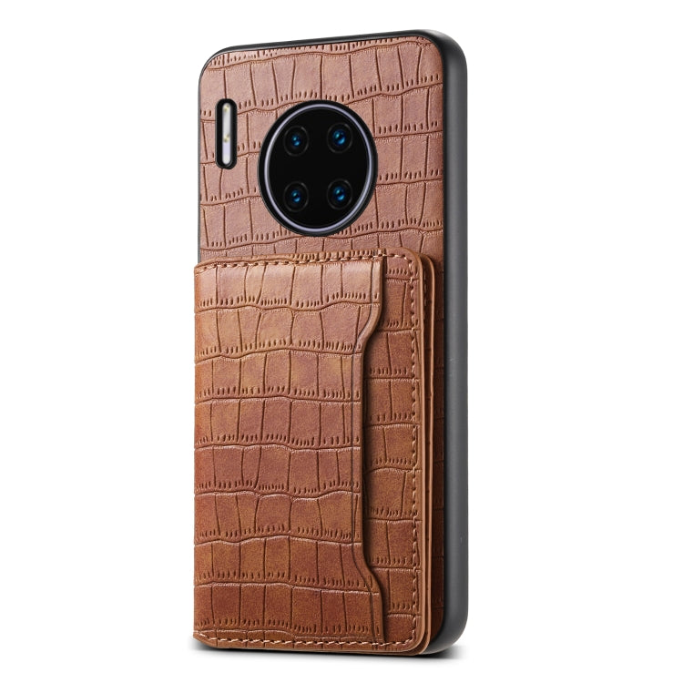 Funda para Huawei Mate 30 con Diseño Bolsa para Tarjetas y Textura de Cocodrilo (Marrón)