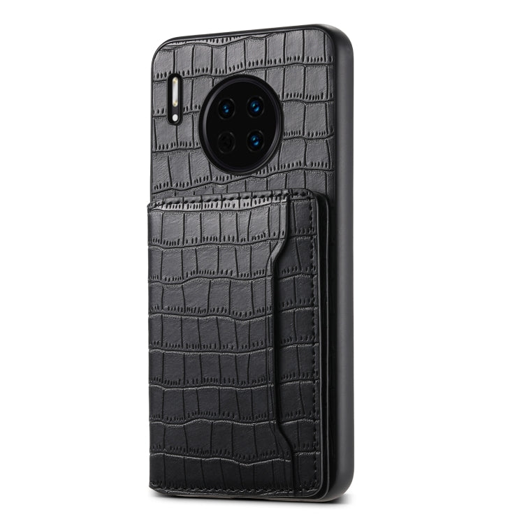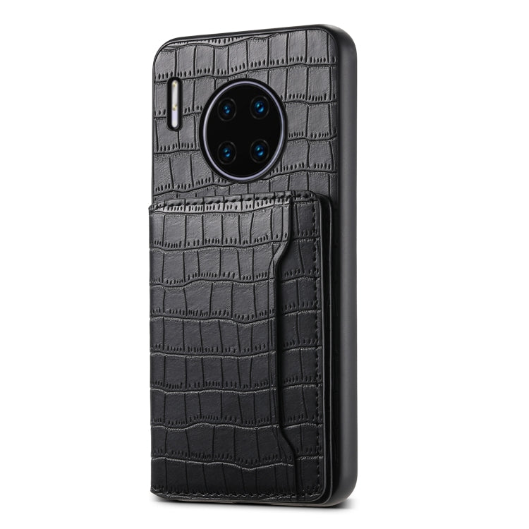 Funda para Huawei Mate 30 con Diseño Bolsa para Tarjetas y Textura de Cocodrilo (Negro)