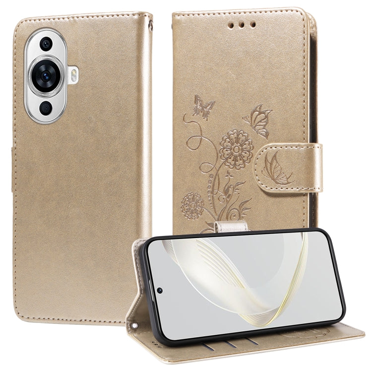 Funda de Cuero Huawei Nova 11 5G/4G y Nova 12 Lite con Diseño de Mariposas y Flores (Dorada)