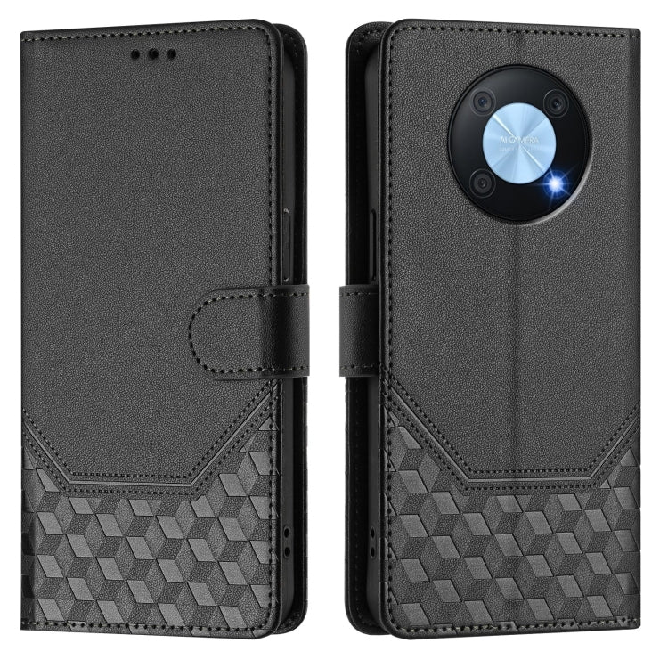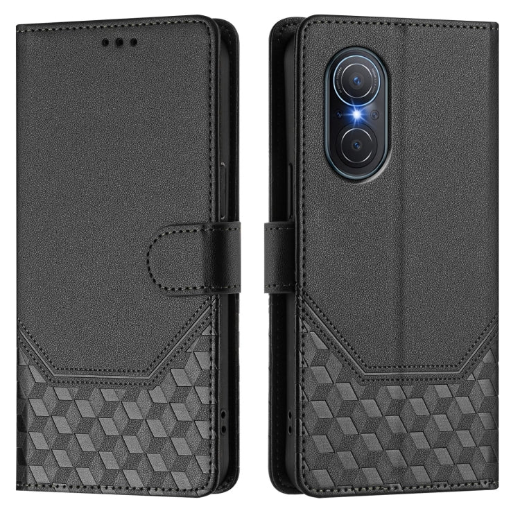 Funda de Cuero con Estampado de Panal y Protección Rfid para Huawei Nova 9 (Negra)