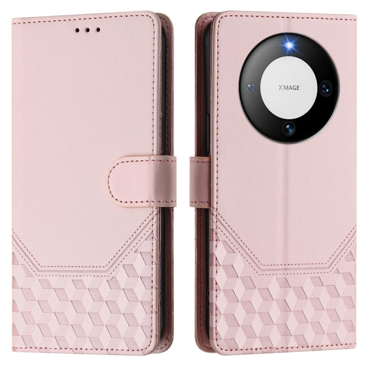 Funda de Cuero Rfid con Relieve en Panal para Huawei Mate 60 Pro y Mate 60 Pro+ (Rosa)