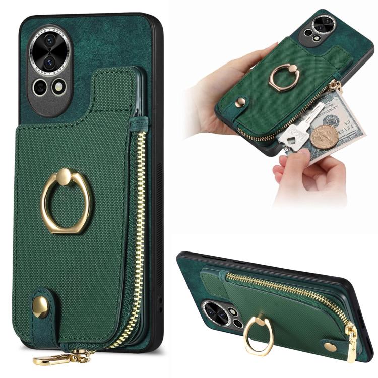 Funda para Teléfono Huawei Nova 9 con Billetera MultiTarjeta, Diseño Retro y Anillo (Verde)