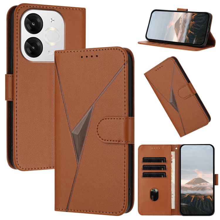 Funda de Cuero Itel A80 con Cierre de Hebilla y Diseño Triangular (Marrón)