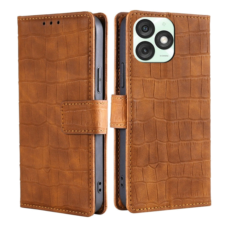 Funda de Piel con Cierre Magnético para Teléfono Itel A50 4G (Marrón) Diseño Cocodrilo