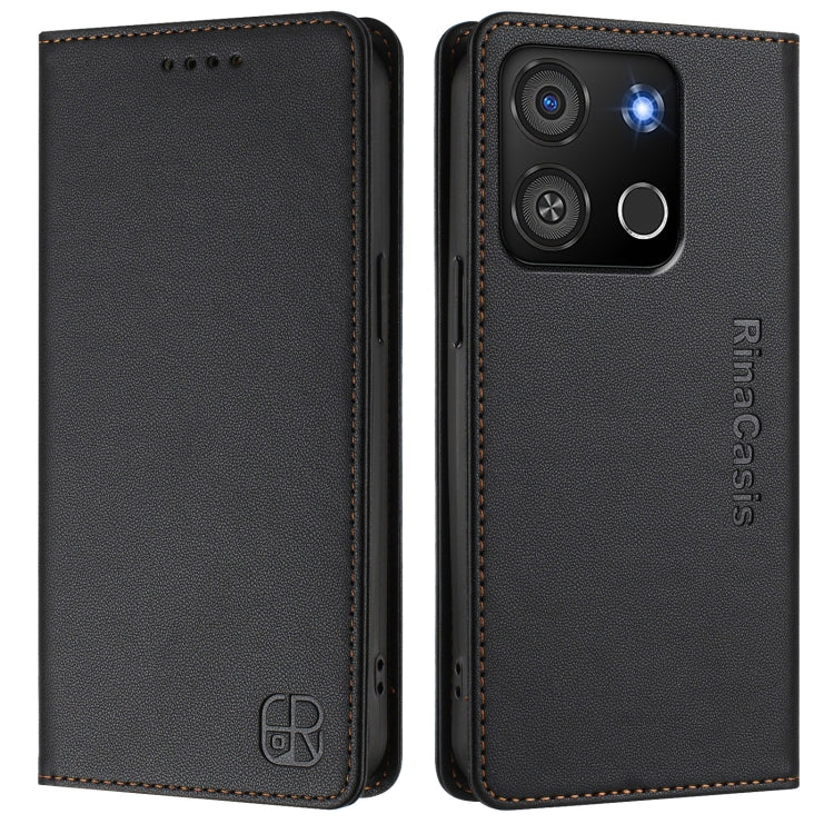 Funda de Cuero Rfid para Teléfono Itel S23/S665L Rc01 con Doble Pliegue y Succión Magnética (Negra)