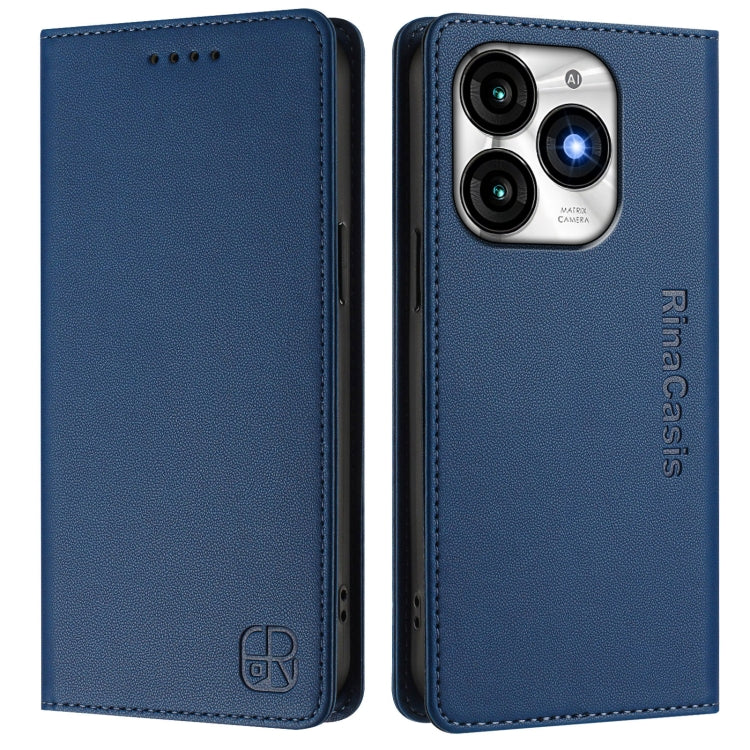 Funda de Cuero Rfid para Teléfono Itel S23+ Rc01 con Doble Pliegue y Succión Magnética (Azul Oscuro)