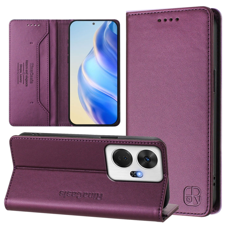 Funda de Cuero Rfid para Teléfono Itel S24 Rc01 con Doble Pliegue y Succión Magnética (Morado Claro)