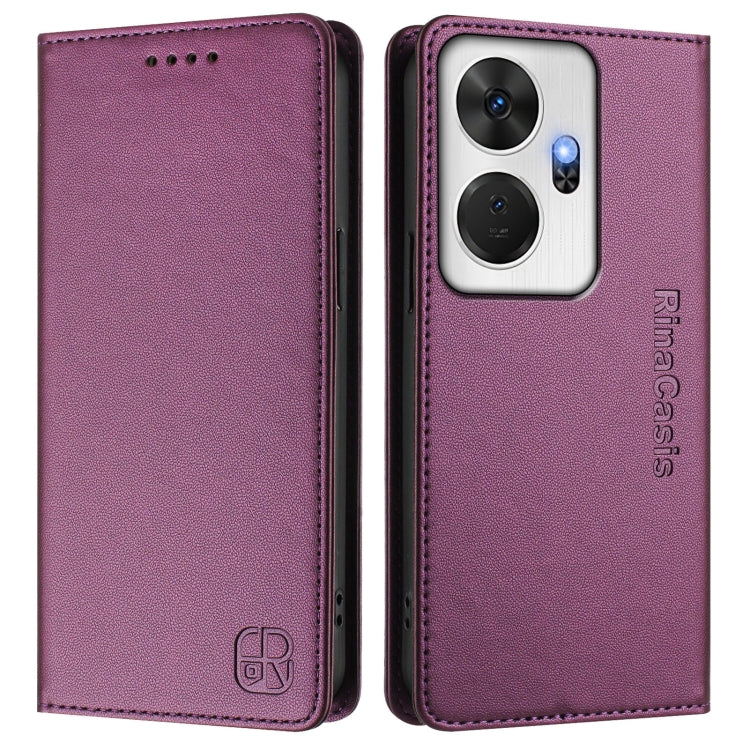 Funda de Cuero Rfid para Teléfono Itel A05S Rc01 con Doble Pliegue y Succión Magnética (Violeta)