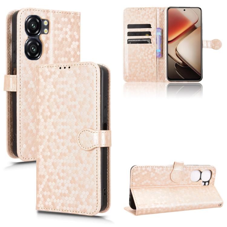 Funda de Cuero con Textura de Puntos Panal para Oukitel C58 y C58 Pro (Dorada)