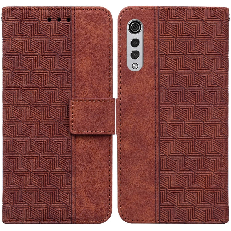 Caja de Cuero Geométrico en Relieve para LG Velvet / G9 5G / 4G (Marrón)