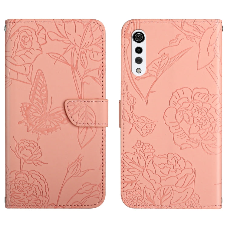 Funda de Cuero En Relieve para LG K52 Siente la Piel de la Mariposa (Rosa)
