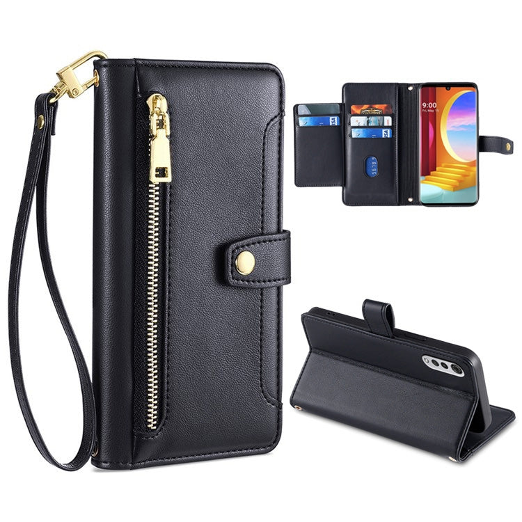 Funda de Cuero para Teléfono LG Velvet Sheep Texture Cross-Body Zipper Wallet (Negro)