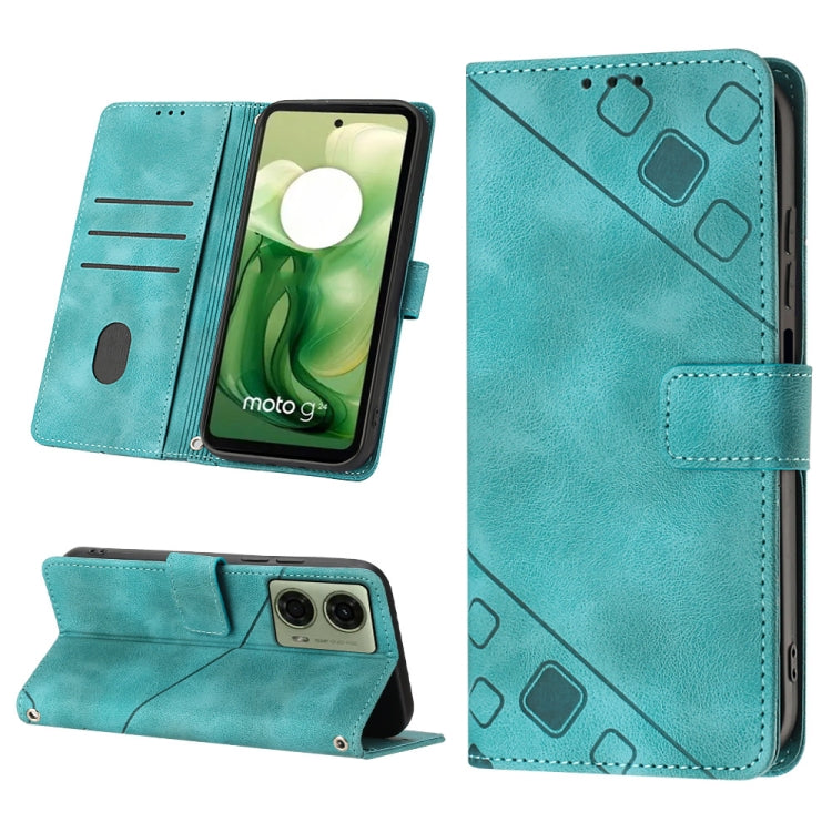 Funda para Motorola Moto G04 4G y G24 4G de Cuero con Relieve y Sensación de Piel (Verde)