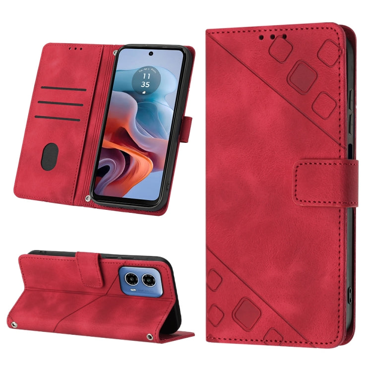 Funda para Motorola Moto G04 4G y G24 4G de Cuero con Relieve y Sensación de Piel (Rojo)