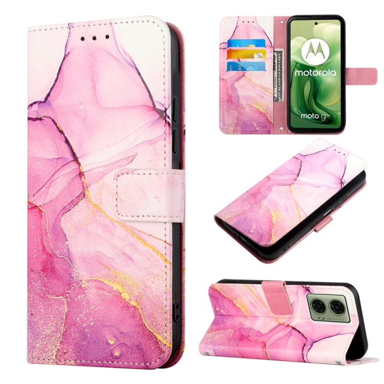 Funda de Cuero para Motorola Moto G Stylus 5G 2024 Pt003 con Tapa y Patrón Mármol (Rosa Blanco)