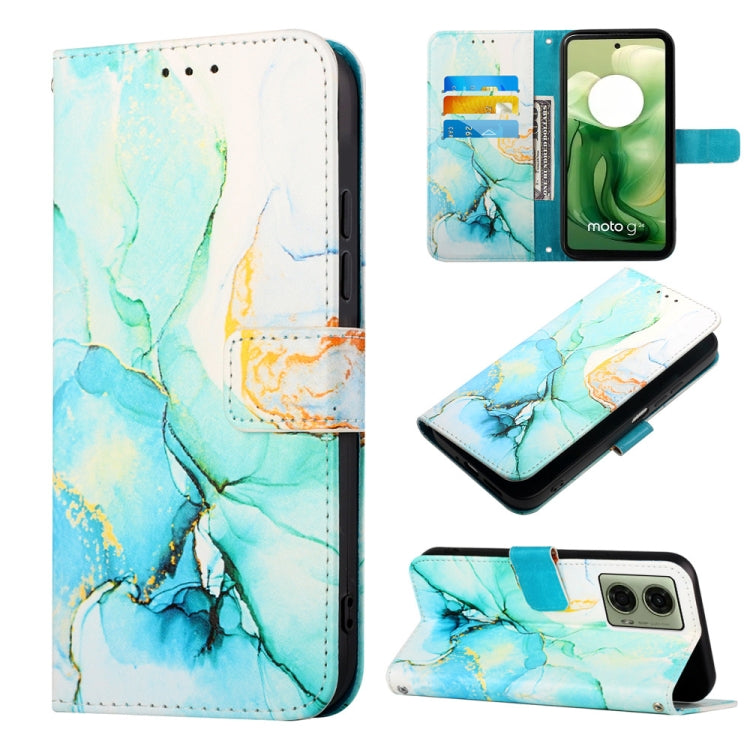 Funda de Cuero para Motorola Moto G Play 5G 2024 Pt003 con Tapa y Patrón de Mármol (Verde)
