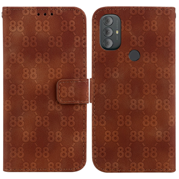 Estuche para Motorola Moto E20 E30 E40 de Cuero en Relieve Doble Forma de 8 (Marrón)