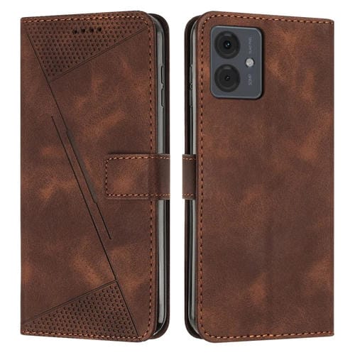Funda de Cuero para Motorola Moto G14 Dream Triangle con Cordón (Marrón)