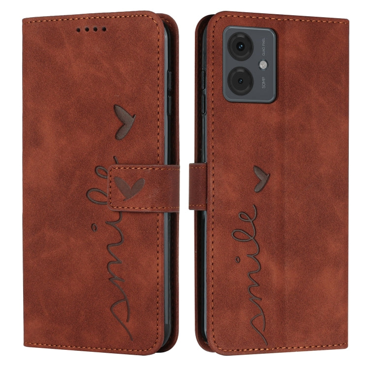 Funda de Cuero para Motorola Moto G14 Skin Feel con Patrón de Corazón (Marrón)