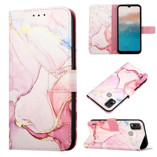 Para Nokia C21 Plus PT003 Patrón de mármol Funda de cuero con tapa para teléfono (Oro rosa LS005)