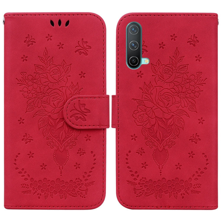 Funda para OnePlus Nord CE 5G Butterfly Rose Foothip en Relieve de Cuero (Rojo)