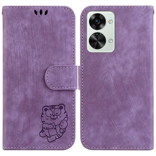 Funda de Cuero para OnePlus Nord 2T Little Tiger en Relieve (Púrpura)