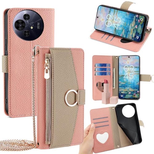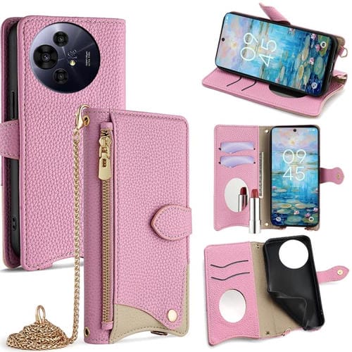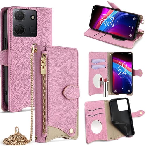 Funda de Cuero con Cadena Cruzada y Diseño Cola de Pez para TCL 503 (Rosa)
