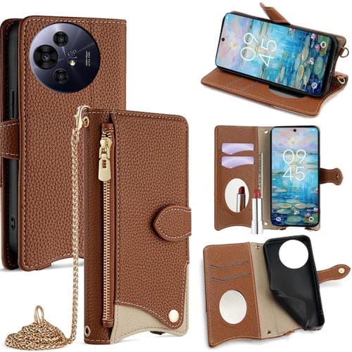 Funda de Cuero para TCL 503 con Cadena Cruzada y Diseño Cola de Pez (Marrón)