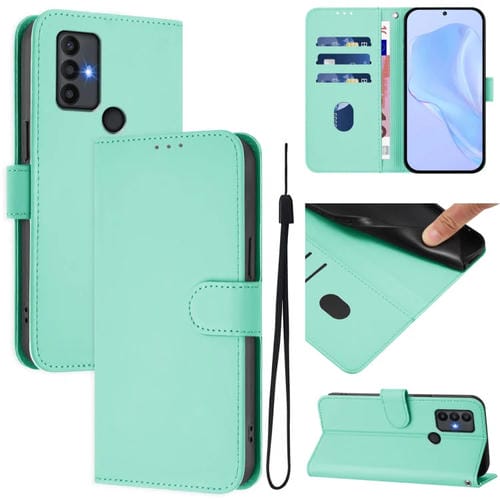 Funda de Cuero con Cordón para Teléfono TCL 30 4G / 30 5G / 30+ Tacto Piel (Verde Menta)