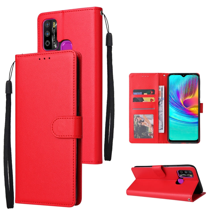 Estuche de Cuero para Infinix Hot 9 Play con Tapa Horizontal y 3 Ranuras para Tarjetas (Rojo)